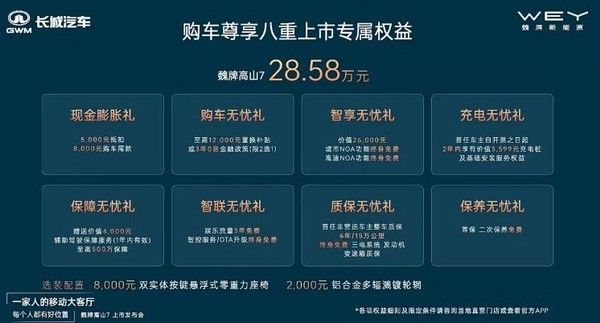 10月19日,魏牌新能源官方发文称,魏牌高山7正式开启交付。作为了解,刚刚上市的高山7仅推出1款车型,售价为28 58万元,是一款主打家庭用户